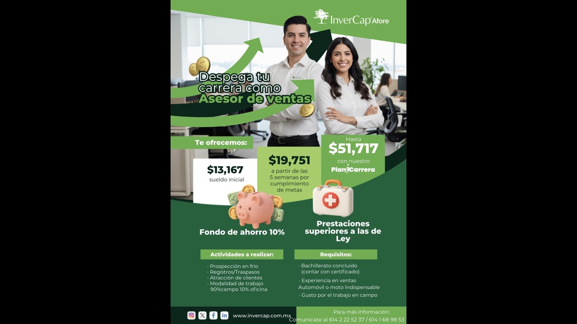 Afore Invercap, somos empresa líder en administración de fondos para el retiro, con más de 20 años de experiencia en el mercado. Estamos comprometidos con brindar seguridad financiera y apoyo a sus clientes en el crecimiento de su patrimonio.